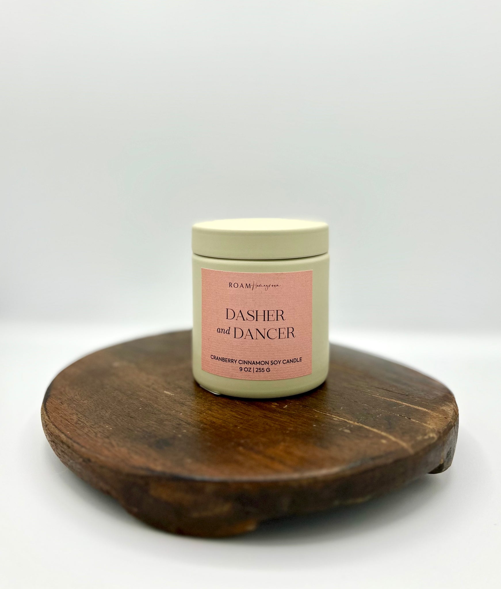 Roam Homegrown's 9 oz. soy candles bring warmth to your home with their long-lasting glow. Each candle burns for up to 40 hours, nestled in a sturdy metal container with a fitted lid for easy storage. Choose from a delightful selection of holiday scents that fill your space with seasonal charm. Made with care from soy wax, these candles are a thoughtful gift or a cozy treat for yourself.
