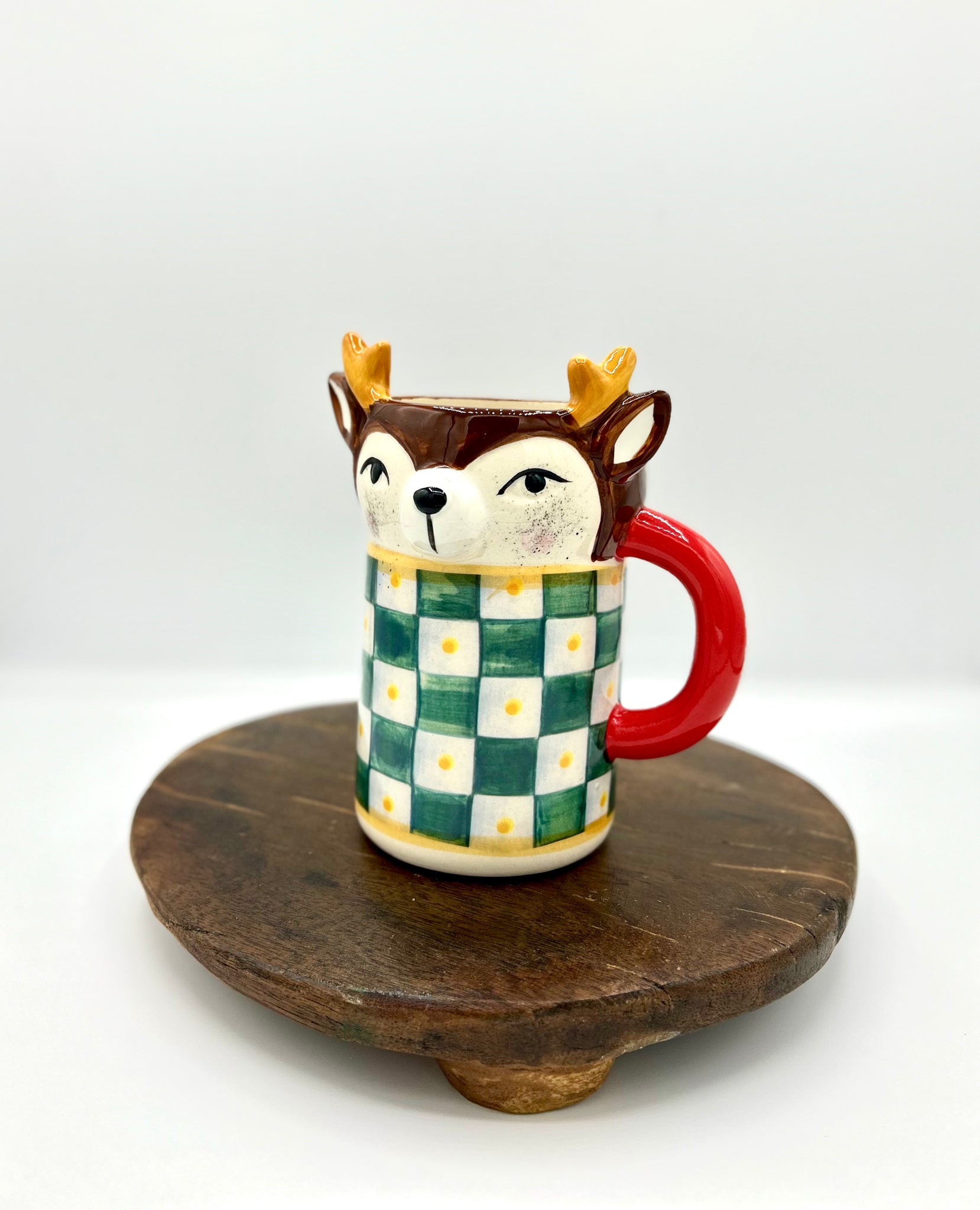 Spread holiday cheer with these charming 12 oz. checkered mugs, each featuring cheerful reindeer or Santa faces. Perfect for warming up with cocoa, coffee, or tea during the festive season, these mugs bring a touch of whimsy to your kitchen.